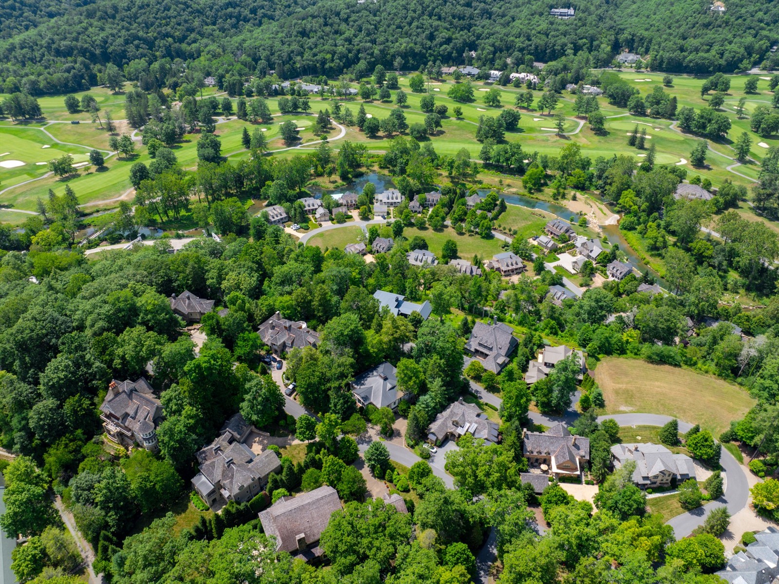 This spectacular 5 bedroom, 5.5 bath home is part of an exclusive enclave of just 39 wooded homesites located behind Paradise Row and the President’s Cottage. The gourmet, eat-in kitchen boasts Quality Custom cabinetry, granite countertops, Sub Zero and Wolf appliances, a center island, and opens to the great room and a veranda. The spacious living room has a 9 1/2-foot ceiling, a handset marble fireplace, Quality Custom wood cabinetry, and French doors that open to a veranda running the length of the home. A luxurious, first floor master suite includes spacious walk-in closets, private porch access, soaking tub, separate shower, and laundry. The lower level boasts nine-foot ceilings, a living area with a full bar, and a sitting area with access to the terrace. Two lower level guest suites each have their own bath and French door access to the terrace. Being close to The Greenbrier means you will never have to travel far to enjoy the 55+ amenities.