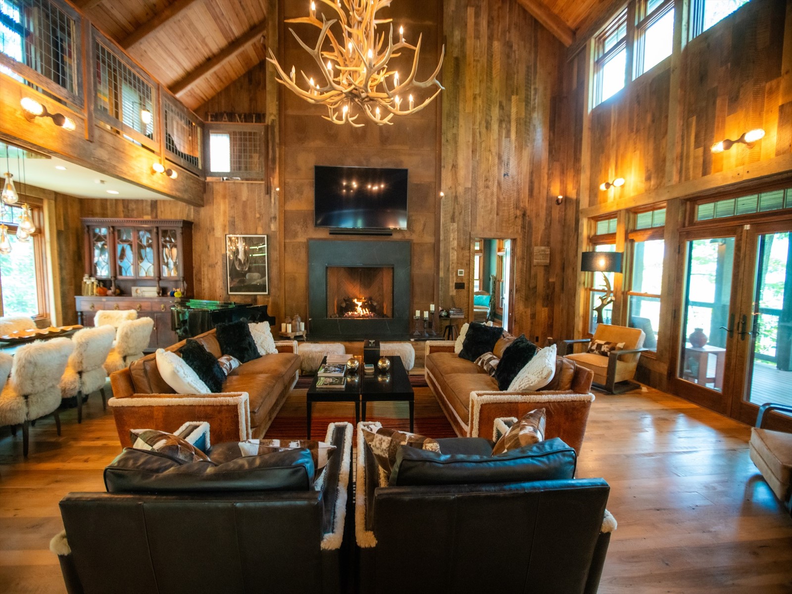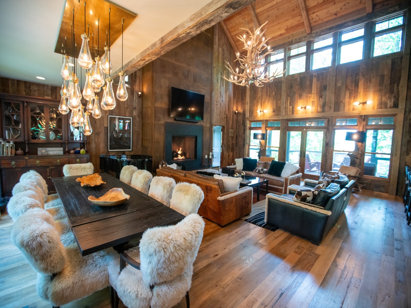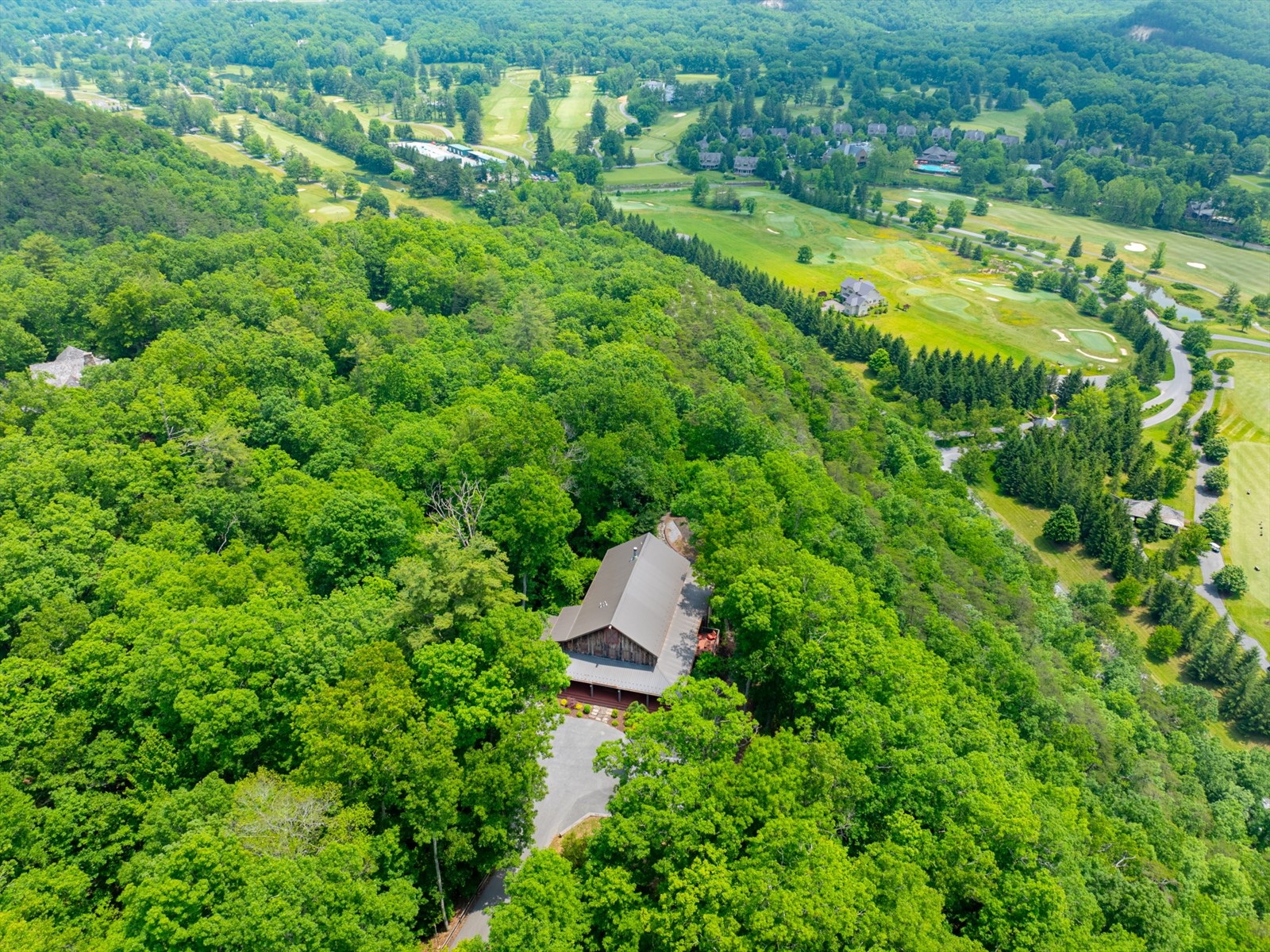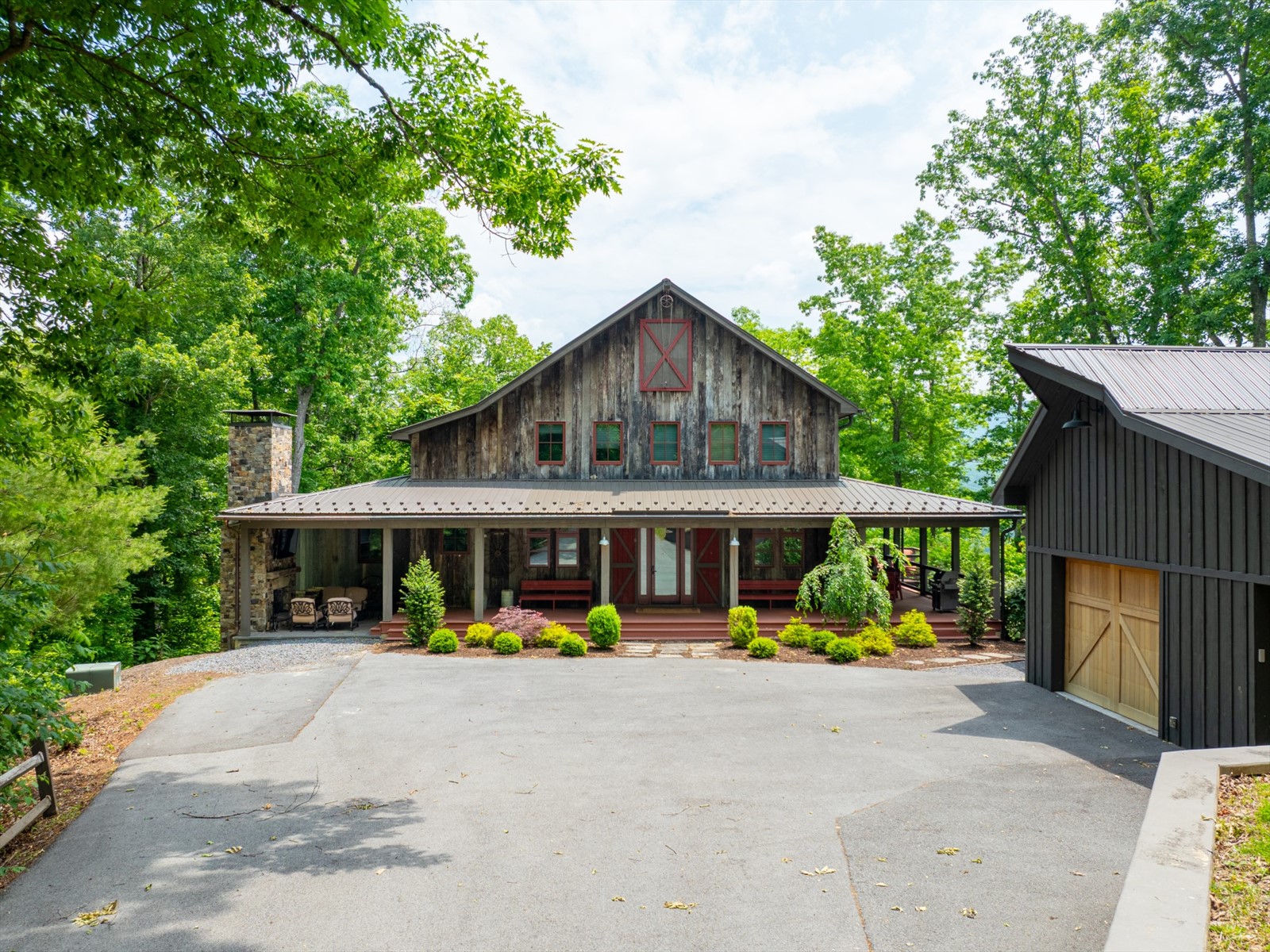 Perched on the edge of the exclusive Ridges neighborhood and offering sweeping views of The Greenbrier Sporting Club, this remarkable estate features two thoughtfully designed residences totaling 5,755 square feet. The primary home spans 3,845 square feet and includes 4 bedrooms and 4.5 bathrooms, seamlessly blending century-old Oak siding and Heart Pine beams with custom modern elements to achieve a sophisticated rustic aesthetic. Recent upgrades include a sleek indoor bar, a new laundry room, and an expansive outdoor living space complete with a custom stone fireplace-ideal for year-round entertaining. Just a short stroll away, the 1,910 square foot guest house offers 3 bedrooms and 2 bathrooms, providing guests with a private and luxurious escape. Both homes showcase breathtaking views of the valley and The Greenbrier Sporting Club, offering an exceptional setting for everyday living. Furnishings are included.