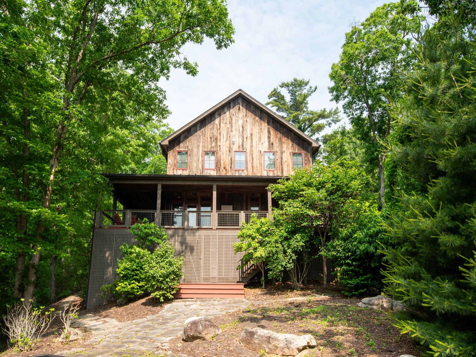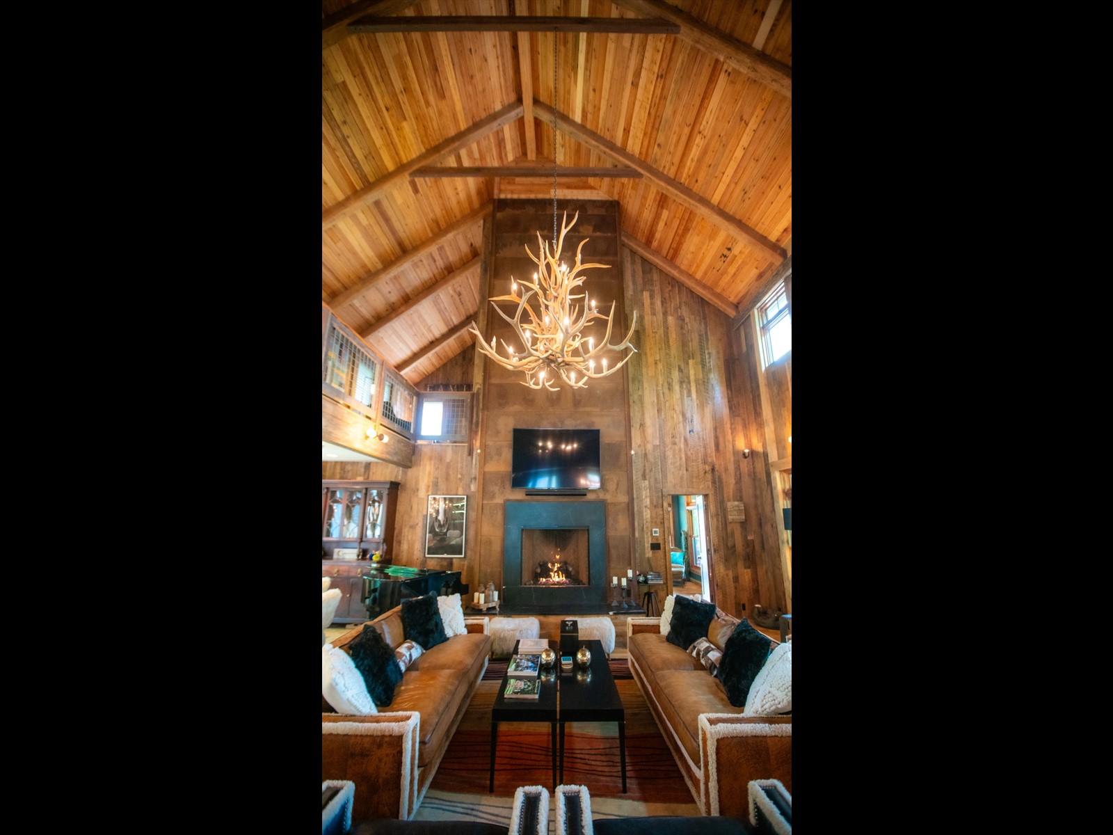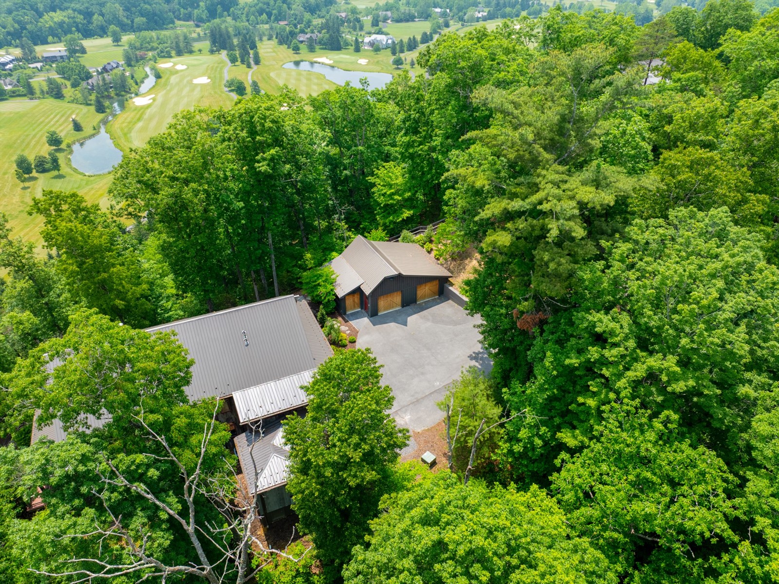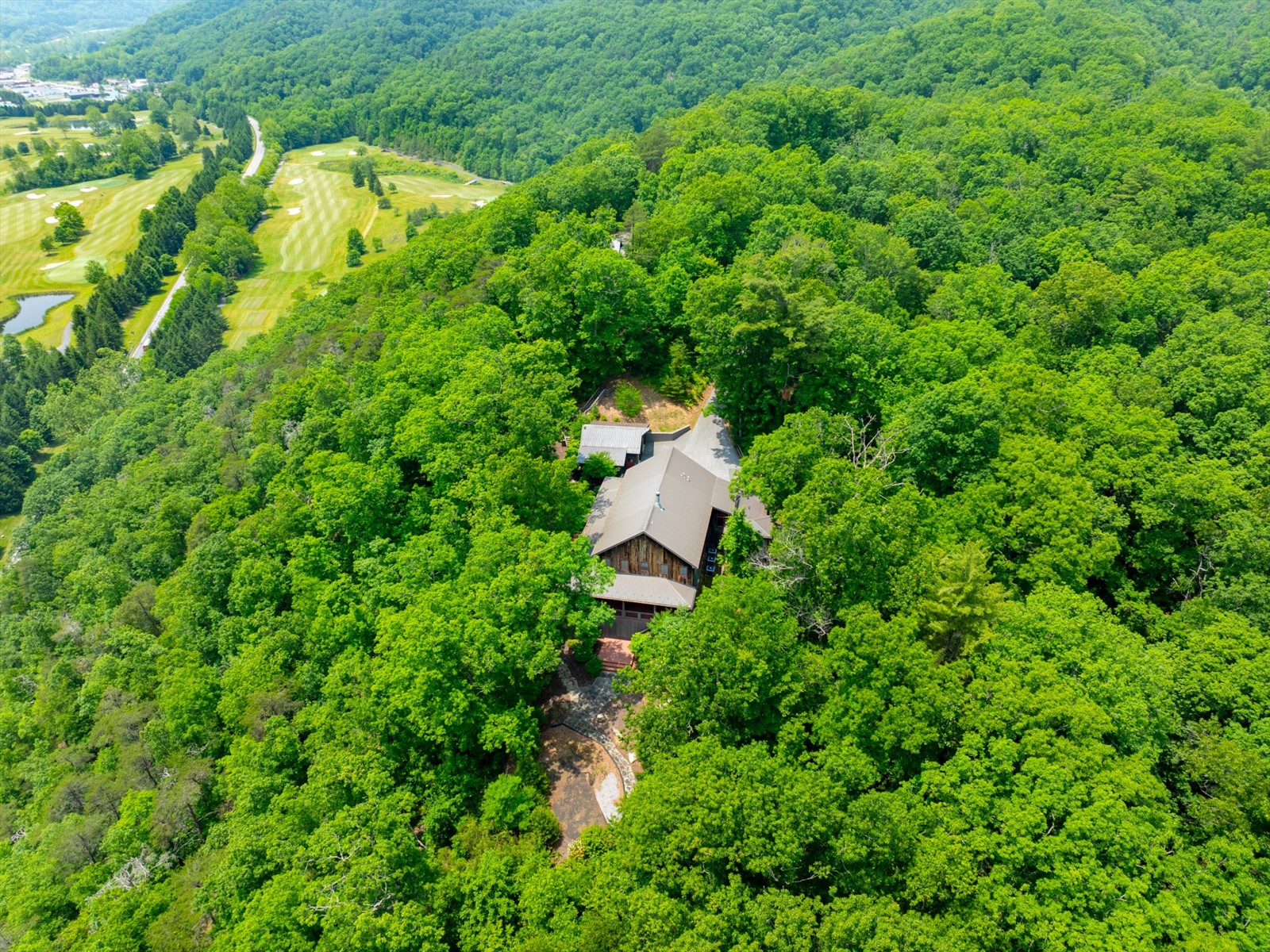 Perched on the edge of the exclusive Ridges neighborhood and offering sweeping views of The Greenbrier Sporting Club, this remarkable estate features two thoughtfully designed residences totaling 5,755 square feet. The primary home spans 3,845 square feet and includes 4 bedrooms and 4.5 bathrooms, seamlessly blending century-old Oak siding and Heart Pine beams with custom modern elements to achieve a sophisticated rustic aesthetic. Recent upgrades include a sleek indoor bar, a new laundry room, and an expansive outdoor living space complete with a custom stone fireplace-ideal for year-round entertaining. Just a short stroll away, the 1,910 square foot guest house offers 3 bedrooms and 2 bathrooms, providing guests with a private and luxurious escape. Both homes showcase breathtaking views of the valley and The Greenbrier Sporting Club, offering an exceptional setting for everyday living. Furnishings are included.