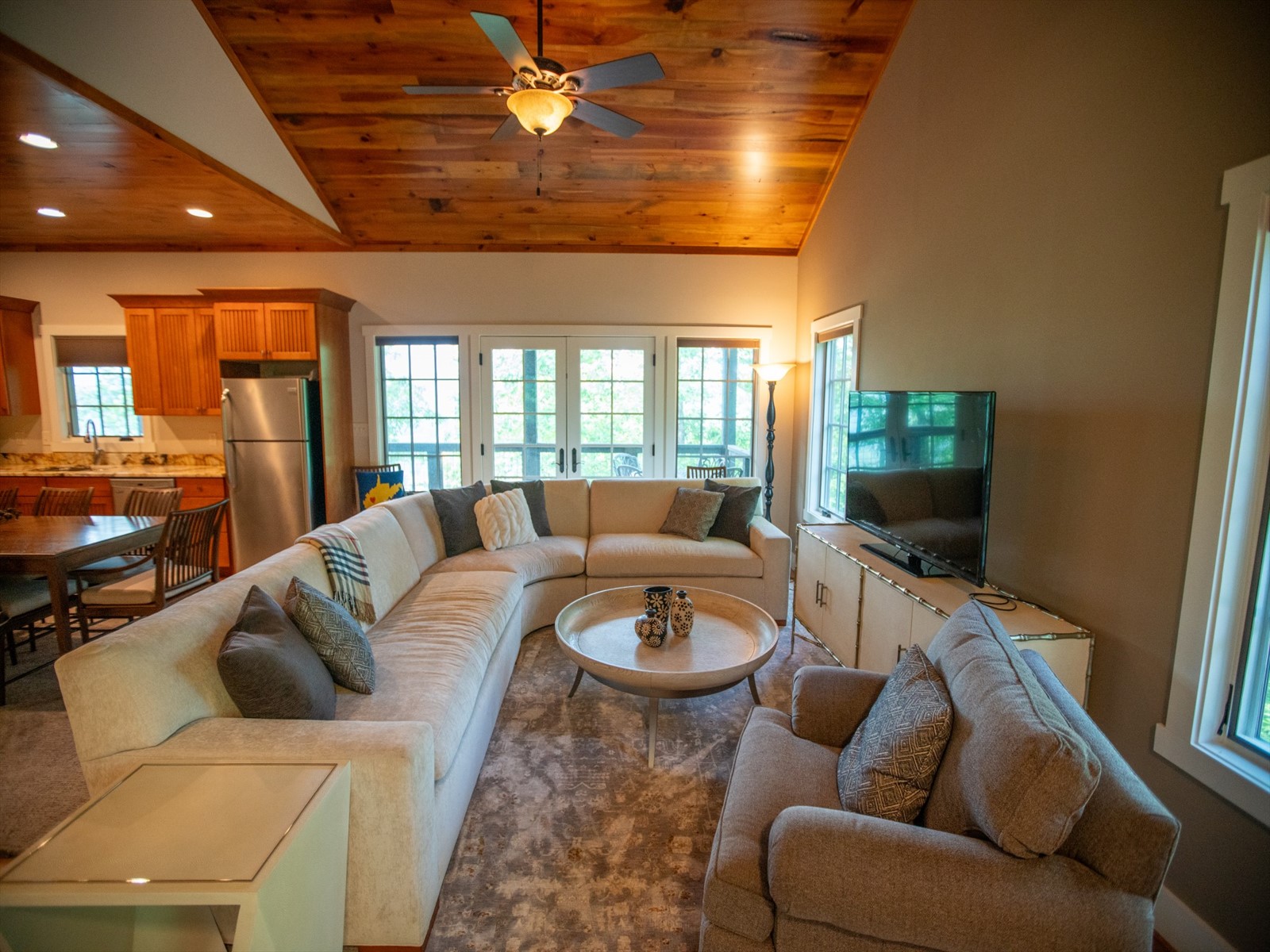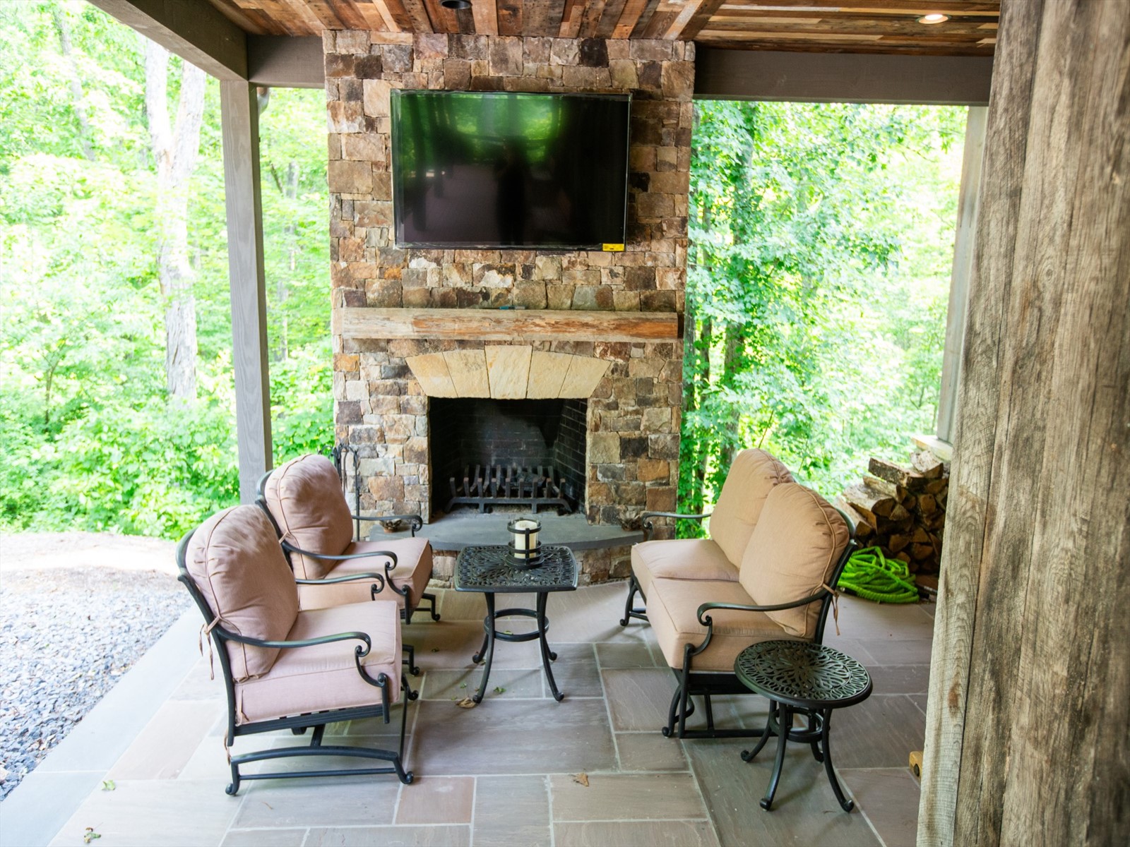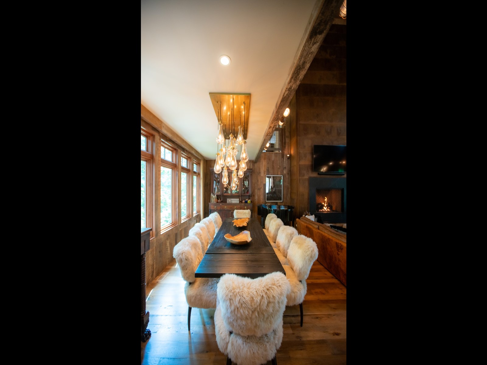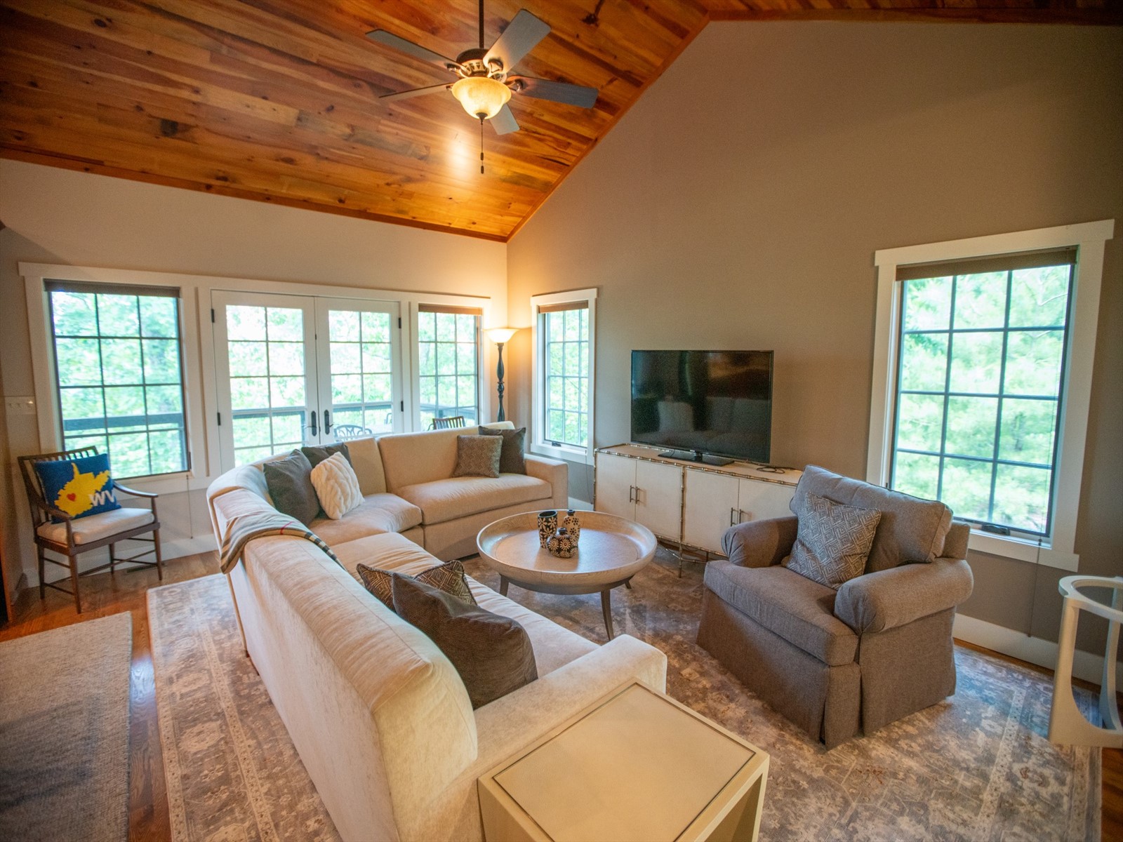 Perched on the edge of the exclusive Ridges neighborhood and offering sweeping views of The Greenbrier Sporting Club, this remarkable estate features two thoughtfully designed residences totaling 5,755 square feet. The primary home spans 3,845 square feet and includes 4 bedrooms and 4.5 bathrooms, seamlessly blending century-old Oak siding and Heart Pine beams with custom modern elements to achieve a sophisticated rustic aesthetic. Recent upgrades include a sleek indoor bar, a new laundry room, and an expansive outdoor living space complete with a custom stone fireplace-ideal for year-round entertaining. Just a short stroll away, the 1,910 square foot guest house offers 3 bedrooms and 2 bathrooms, providing guests with a private and luxurious escape. Both homes showcase breathtaking views of the valley and The Greenbrier Sporting Club, offering an exceptional setting for everyday living. Furnishings are included.