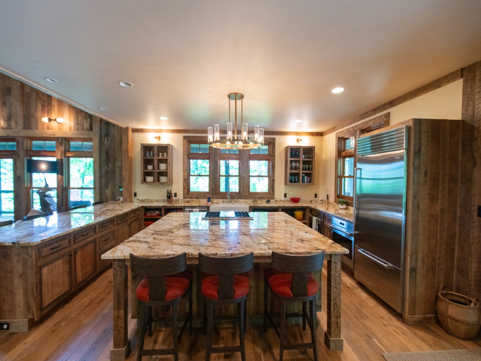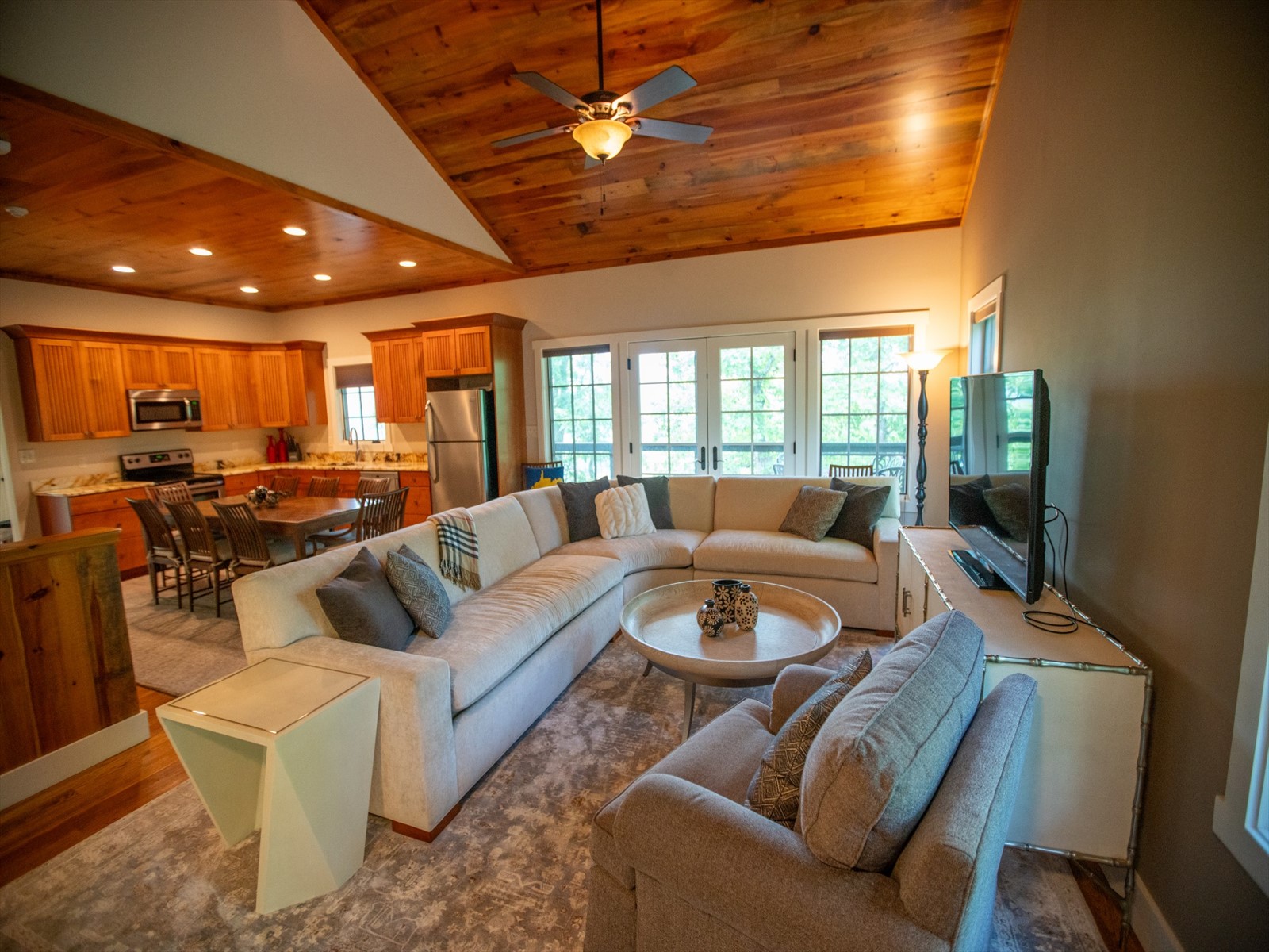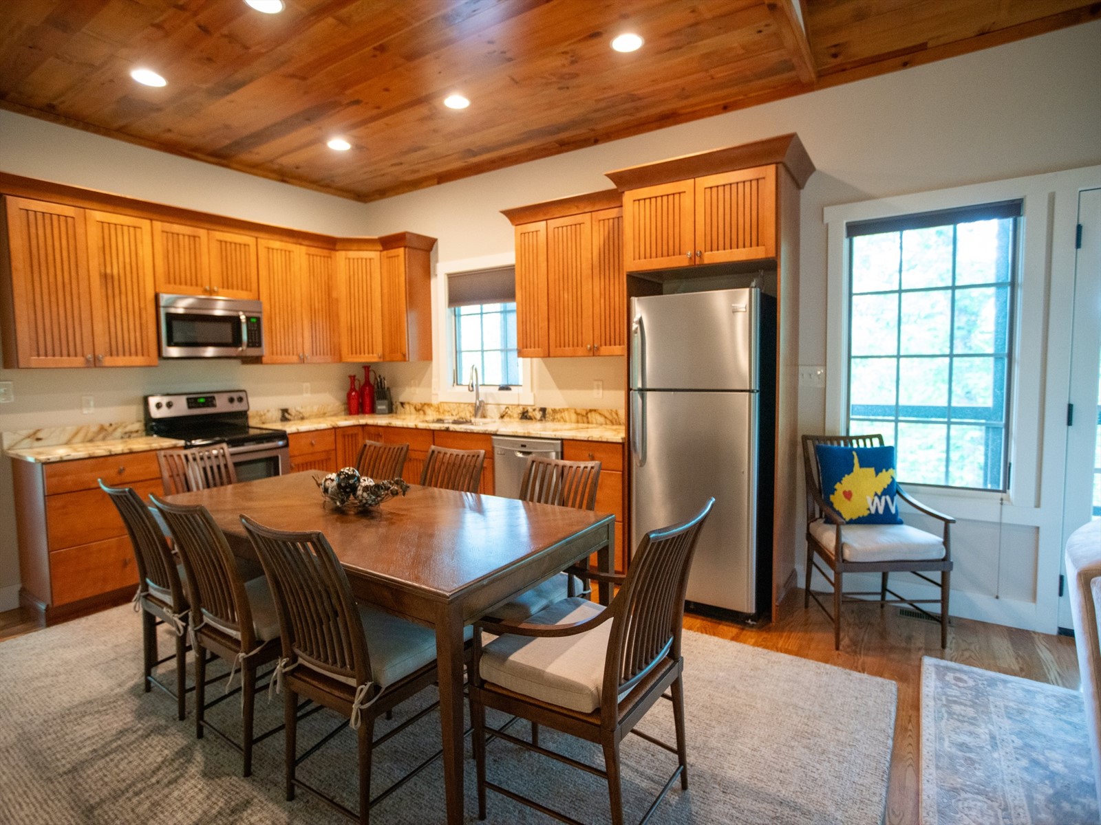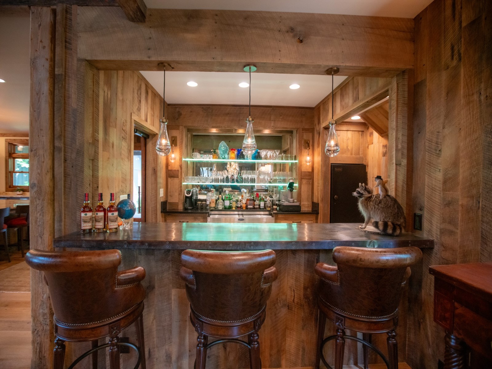 Perched on the edge of the exclusive Ridges neighborhood and offering sweeping views of The Greenbrier Sporting Club, this remarkable estate features two thoughtfully designed residences totaling 5,755 square feet. The primary home spans 3,845 square feet and includes 4 bedrooms and 4.5 bathrooms, seamlessly blending century-old Oak siding and Heart Pine beams with custom modern elements to achieve a sophisticated rustic aesthetic. Recent upgrades include a sleek indoor bar, a new laundry room, and an expansive outdoor living space complete with a custom stone fireplace-ideal for year-round entertaining. Just a short stroll away, the 1,910 square foot guest house offers 3 bedrooms and 2 bathrooms, providing guests with a private and luxurious escape. Both homes showcase breathtaking views of the valley and The Greenbrier Sporting Club, offering an exceptional setting for everyday living. Furnishings are included.