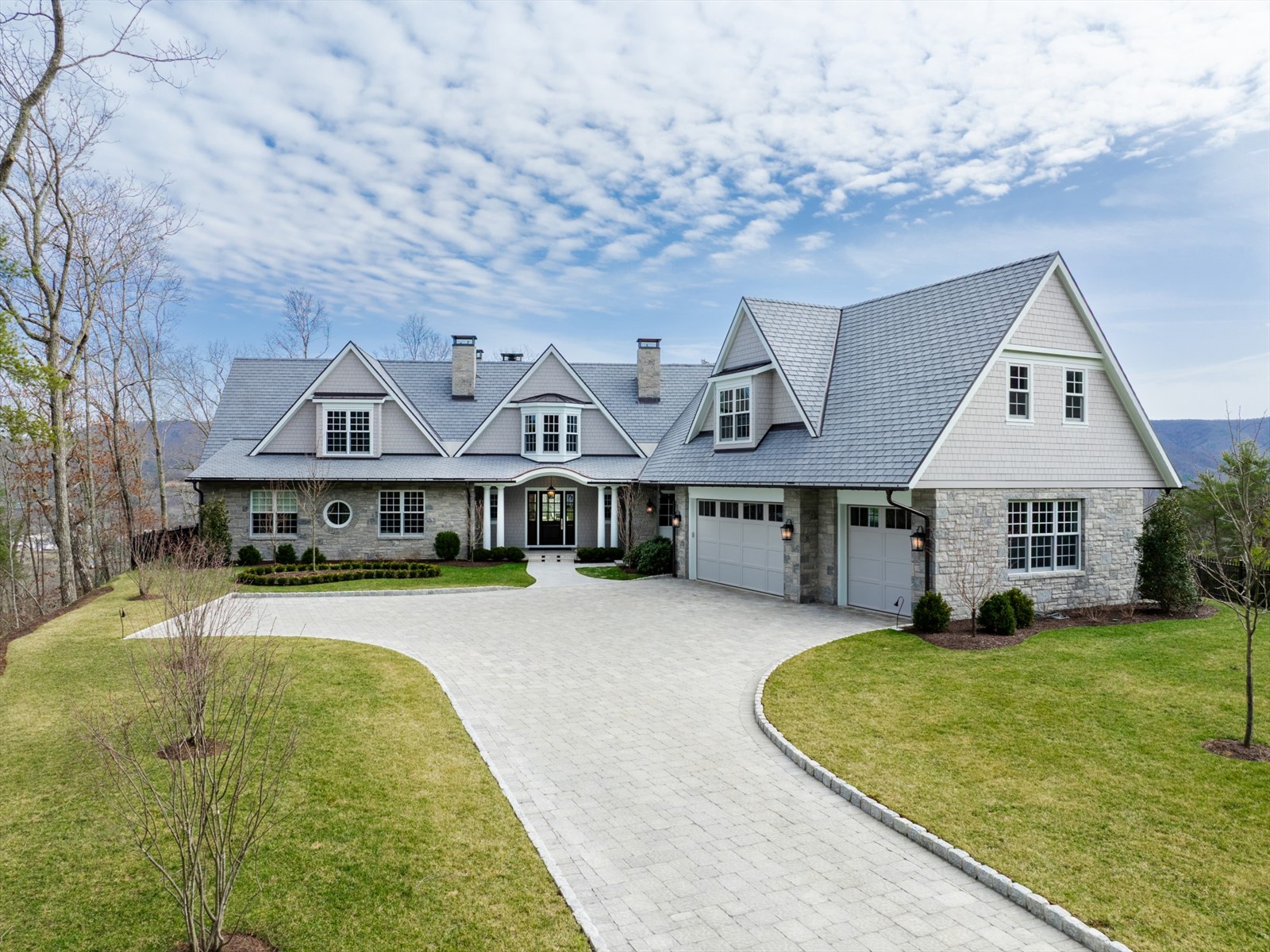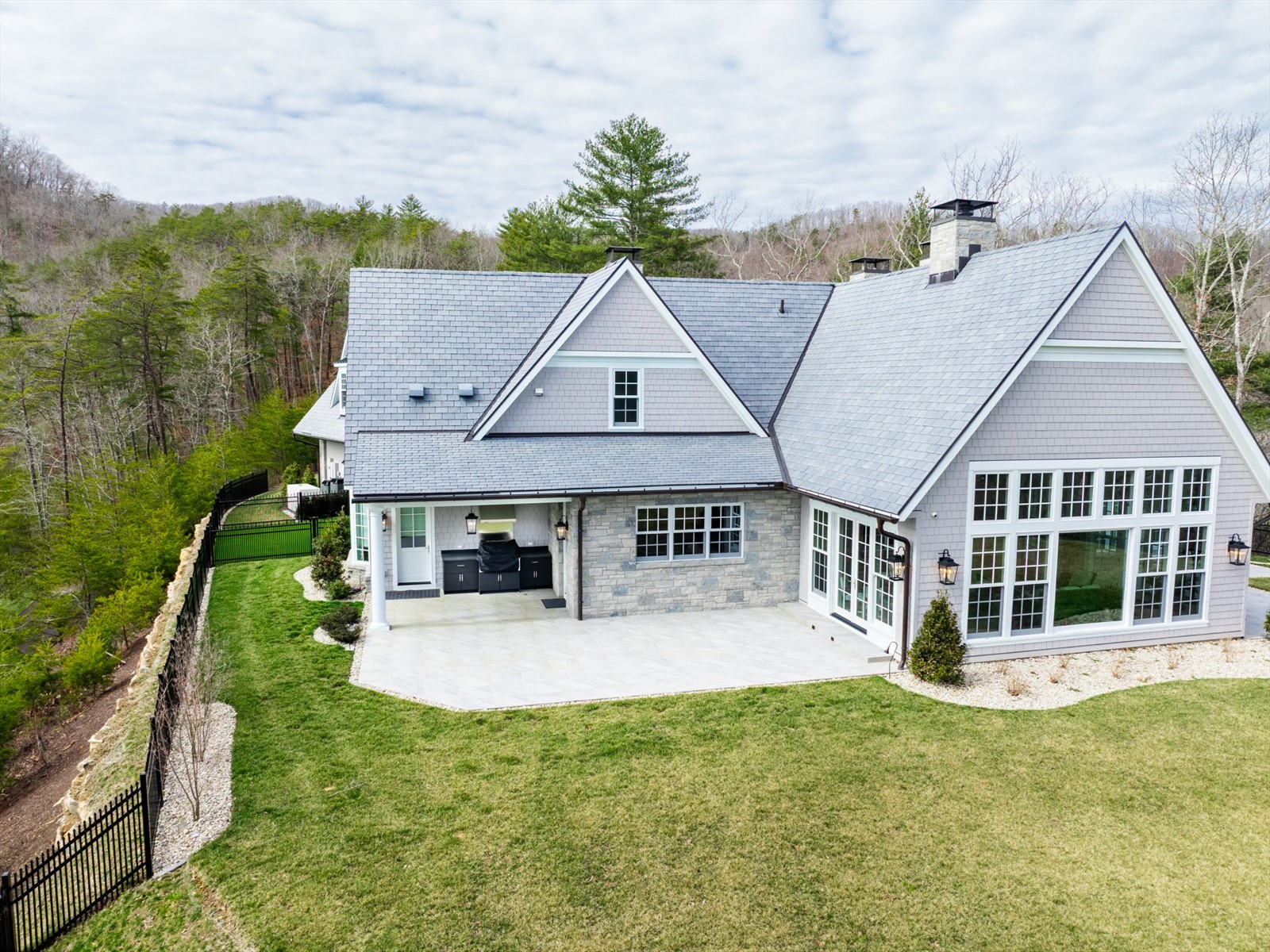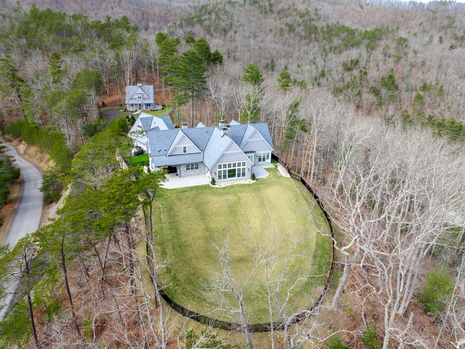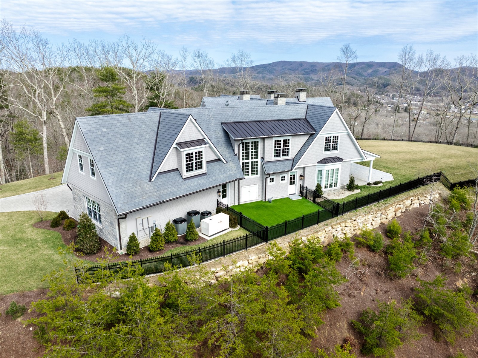 Located within the prestigious Greenbrier Sporting Club, this remarkable estate, completed in 2024, features two thoughtfully designed homes on a single property, offering a perfect blend of luxury, privacy, and mountain charm. The main residence spans 5,850 square feet and includes 3 bedrooms, 4 full baths, and 1 half bath. Set on an expansive, fenced-in yard, the home enjoys unobstructed views of The Old White golf course and boasts one of the best mountain views in the community, all while being conveniently situated lower in the mountains for easy access. Inside, the main level showcases two spacious en suite bedrooms, providing ideal comfort for everyday living and guests alike. The primary suite is a luxurious retreat with a private office, sunroom, wet bar, walk-in closet, and a spa-inspired bathroom finished in Calcutta Black Quartz and featuring an Americh tub. The heart of the home is the stunning gourmet kitchen, appointed with seven slabs of Calacatta Hera Quartz, custom cabinetry, a Wolf range with outdoor grill, Sub-Zero refrigeration, and a Cove dishwasher—designed to impress both the casual cook and seasoned chef. The kitchen flows seamlessly into the great room, where 13-foot ceilings and a striking Soapstone fireplace create an inviting space for entertaining. The adjacent sunroom, filled with natural light and warmed by a gas fireplace, connects effortlessly to both the great room and kitchen, offering a cozy yet open feel. Upstairs, you'll find a third bedroom with two full bathrooms, along with unfinished space above the three-car garage—perfect for a potential fourth bedroom, studio, or media room. The guest house is equally charming, featuring three en suite bedrooms, a stone patio, and a gas fireplace, ideal for hosting family and friends or offering private accommodations. Whether you're relaxing in the yard while taking in the sweeping golf course and mountain views, or entertaining in the sunlit interiors, this exceptional property captures the best of life at The Greenbrier Sporting Club.