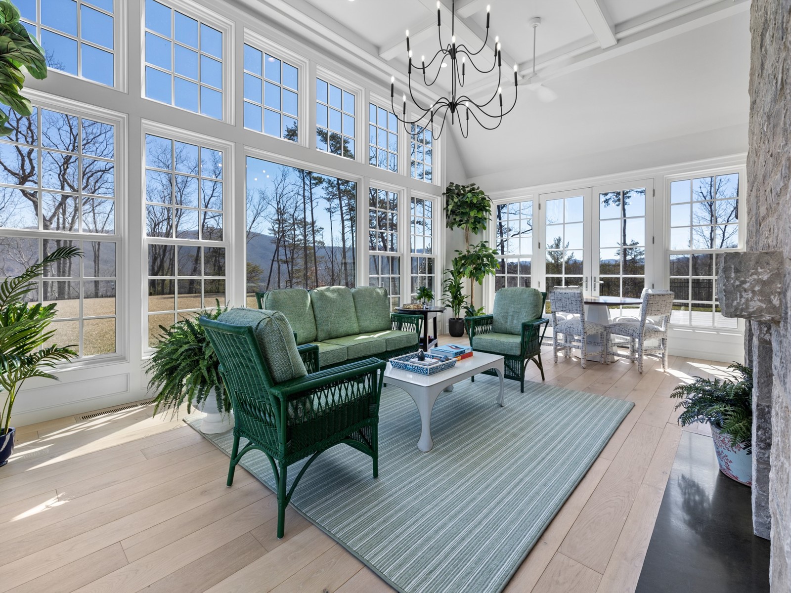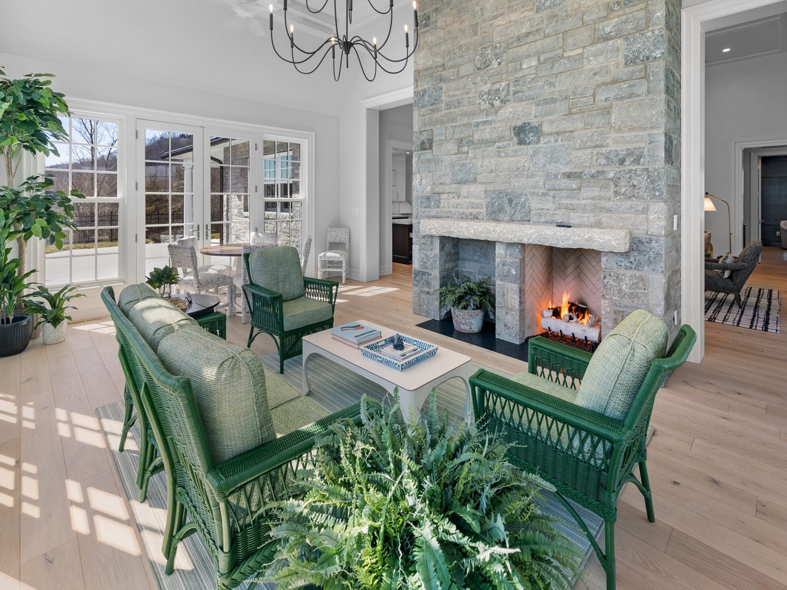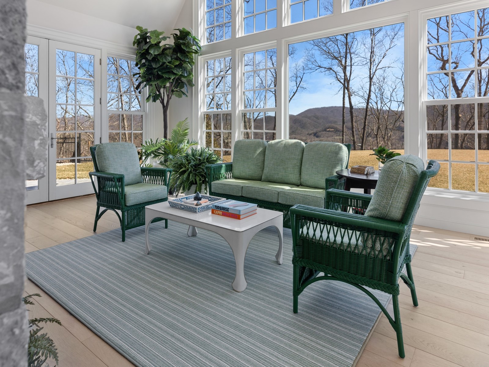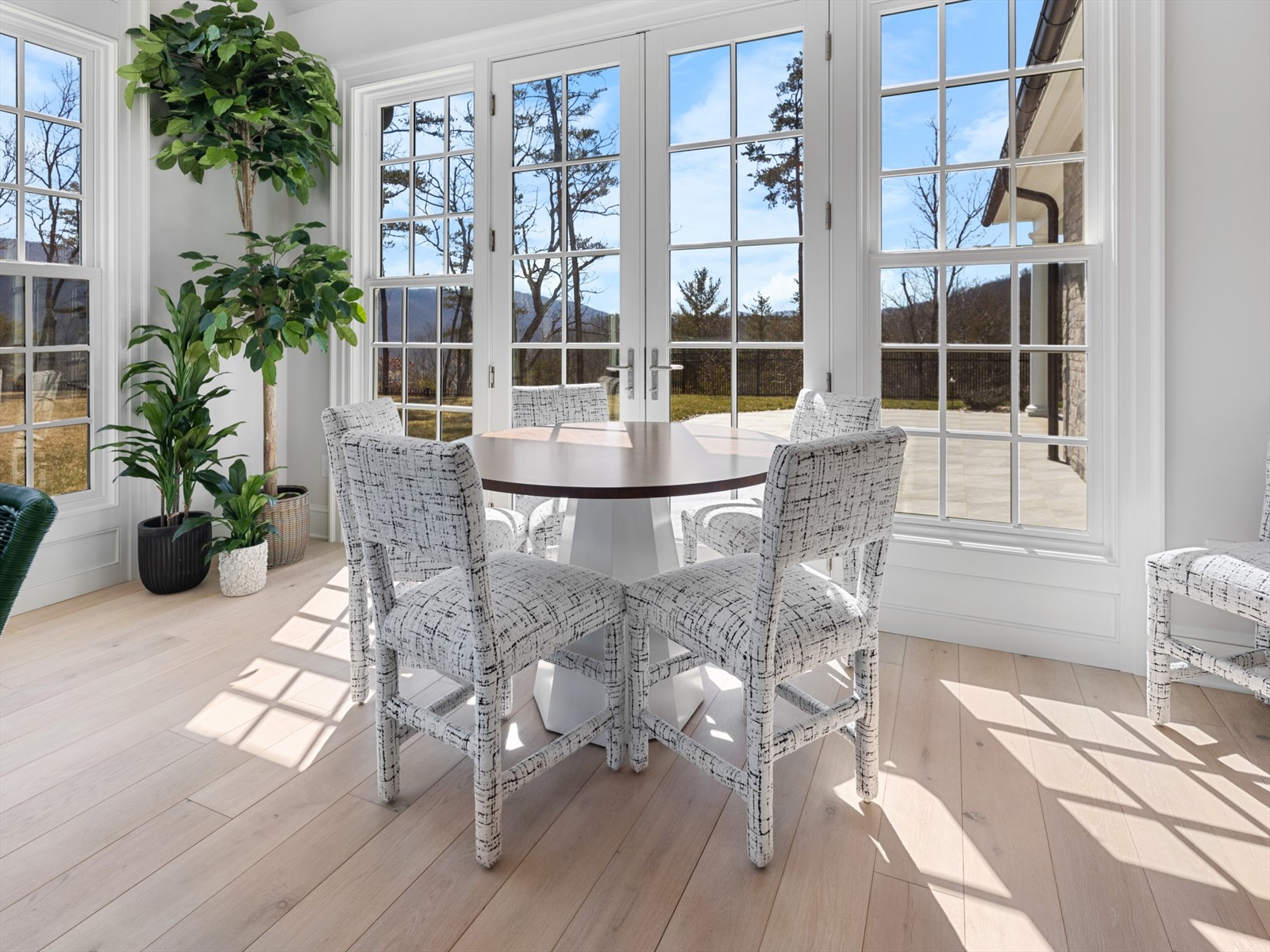 Located within the prestigious Greenbrier Sporting Club, this remarkable estate, completed in 2024, features two thoughtfully designed homes on a single property, offering a perfect blend of luxury, privacy, and mountain charm. The main residence spans 5,850 square feet and includes 3 bedrooms, 4 full baths, and 1 half bath. Set on an expansive, fenced-in yard, the home enjoys unobstructed views of The Old White golf course and boasts one of the best mountain views in the community, all while being conveniently situated lower in the mountains for easy access. Inside, the main level showcases two spacious en suite bedrooms, providing ideal comfort for everyday living and guests alike. The primary suite is a luxurious retreat with a private office, sunroom, wet bar, walk-in closet, and a spa-inspired bathroom finished in Calcutta Black Quartz and featuring an Americh tub. The heart of the home is the stunning gourmet kitchen, appointed with seven slabs of Calacatta Hera Quartz, custom cabinetry, a Wolf range with outdoor grill, Sub-Zero refrigeration, and a Cove dishwasher—designed to impress both the casual cook and seasoned chef. The kitchen flows seamlessly into the great room, where 13-foot ceilings and a striking Soapstone fireplace create an inviting space for entertaining. The adjacent sunroom, filled with natural light and warmed by a gas fireplace, connects effortlessly to both the great room and kitchen, offering a cozy yet open feel. Upstairs, you'll find a third bedroom with two full bathrooms, along with unfinished space above the three-car garage—perfect for a potential fourth bedroom, studio, or media room. The guest house is equally charming, featuring three en suite bedrooms, a stone patio, and a gas fireplace, ideal for hosting family and friends or offering private accommodations. Whether you're relaxing in the yard while taking in the sweeping golf course and mountain views, or entertaining in the sunlit interiors, this exceptional property captures the best of life at The Greenbrier Sporting Club.