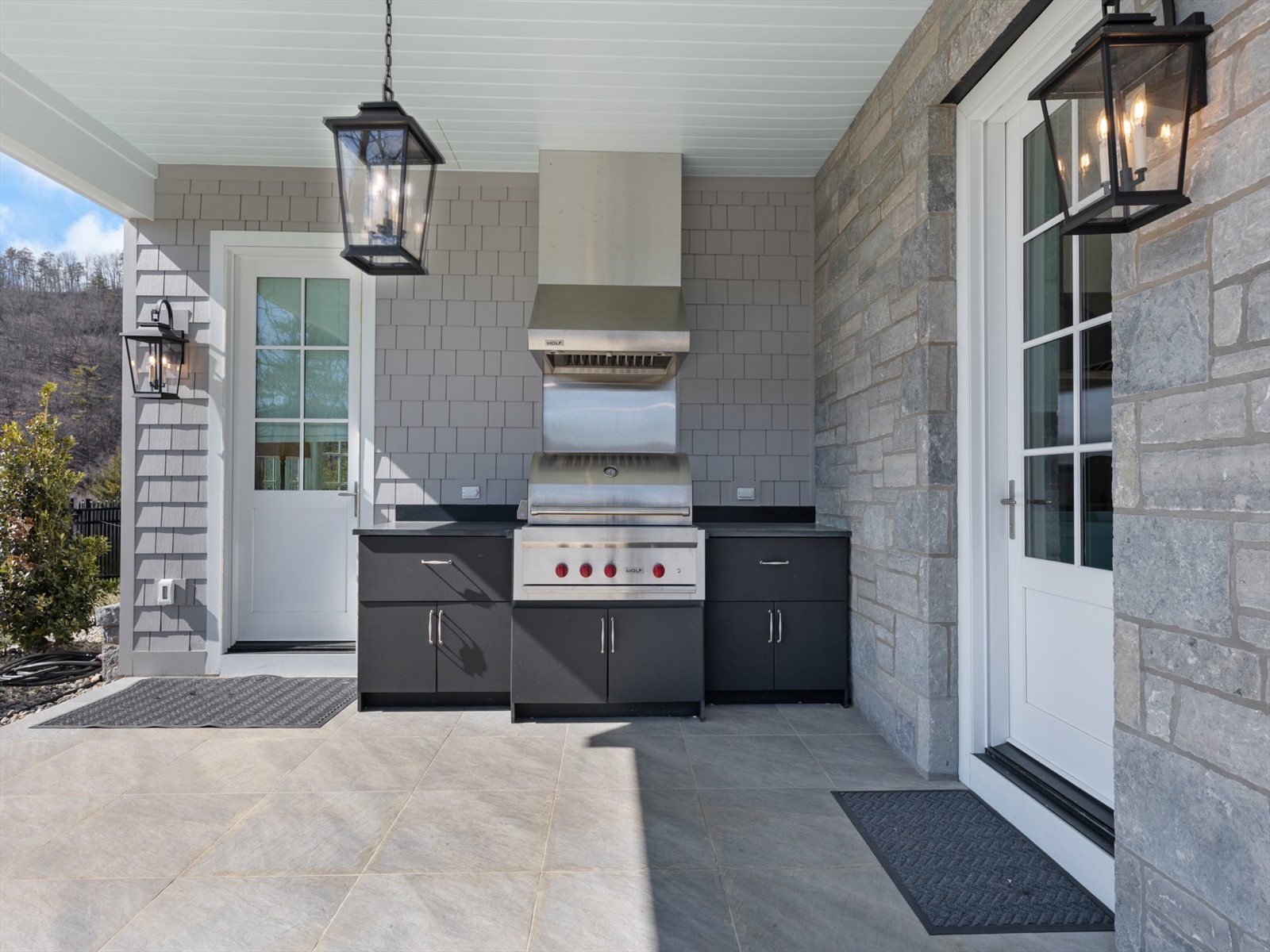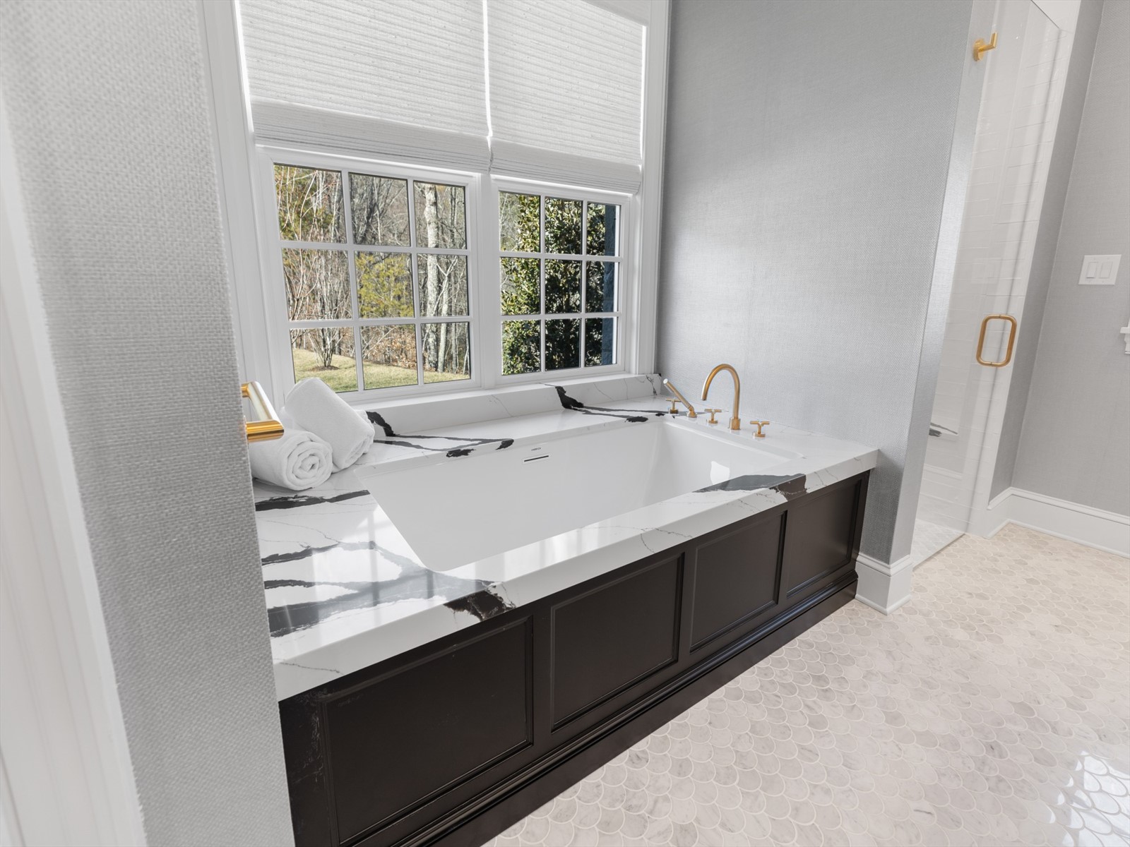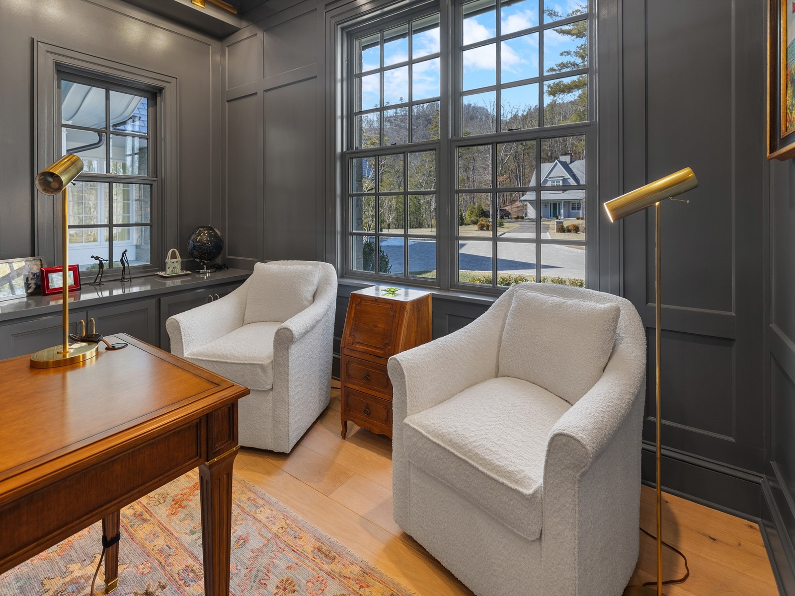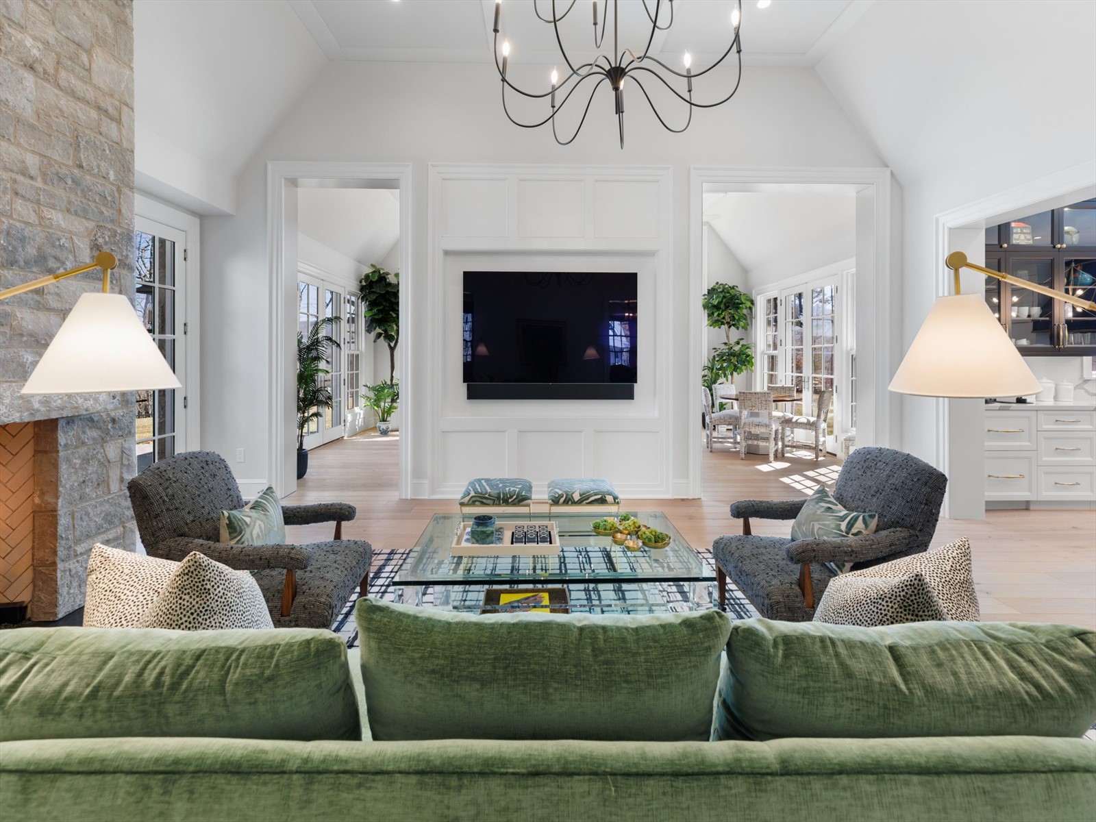 Located within the prestigious Greenbrier Sporting Club, this remarkable estate, completed in 2024, features two thoughtfully designed homes on a single property, offering a perfect blend of luxury, privacy, and mountain charm. The main residence spans 5,850 square feet and includes 3 bedrooms, 4 full baths, and 1 half bath. Set on an expansive, fenced-in yard, the home enjoys unobstructed views of The Old White golf course and boasts one of the best mountain views in the community, all while being conveniently situated lower in the mountains for easy access. Inside, the main level showcases two spacious en suite bedrooms, providing ideal comfort for everyday living and guests alike. The primary suite is a luxurious retreat with a private office, sunroom, wet bar, walk-in closet, and a spa-inspired bathroom finished in Calcutta Black Quartz and featuring an Americh tub. The heart of the home is the stunning gourmet kitchen, appointed with seven slabs of Calacatta Hera Quartz, custom cabinetry, a Wolf range with outdoor grill, Sub-Zero refrigeration, and a Cove dishwasher—designed to impress both the casual cook and seasoned chef. The kitchen flows seamlessly into the great room, where 13-foot ceilings and a striking Soapstone fireplace create an inviting space for entertaining. The adjacent sunroom, filled with natural light and warmed by a gas fireplace, connects effortlessly to both the great room and kitchen, offering a cozy yet open feel. Upstairs, you'll find a third bedroom with two full bathrooms, along with unfinished space above the three-car garage—perfect for a potential fourth bedroom, studio, or media room. The guest house is equally charming, featuring three en suite bedrooms, a stone patio, and a gas fireplace, ideal for hosting family and friends or offering private accommodations. Whether you're relaxing in the yard while taking in the sweeping golf course and mountain views, or entertaining in the sunlit interiors, this exceptional property captures the best of life at The Greenbrier Sporting Club.