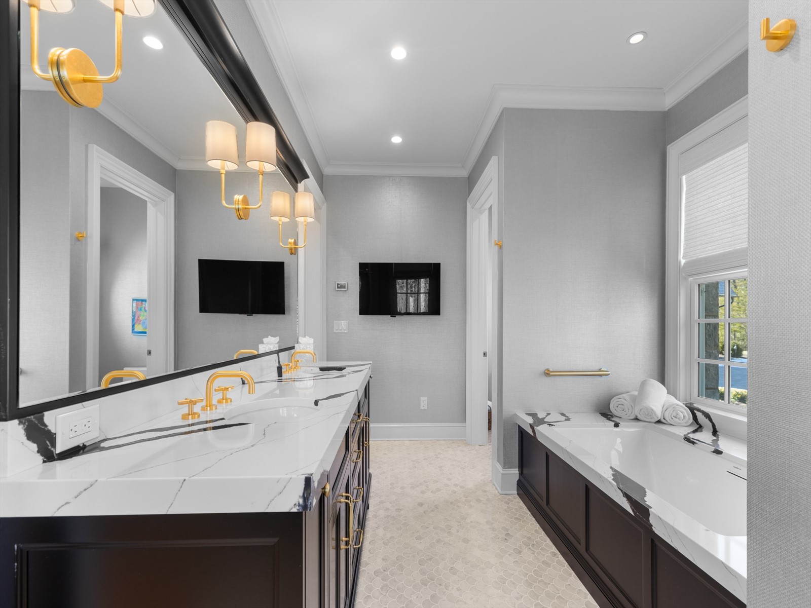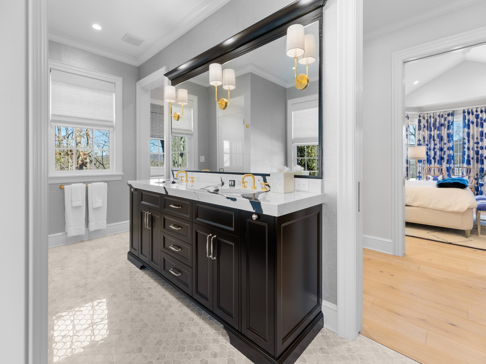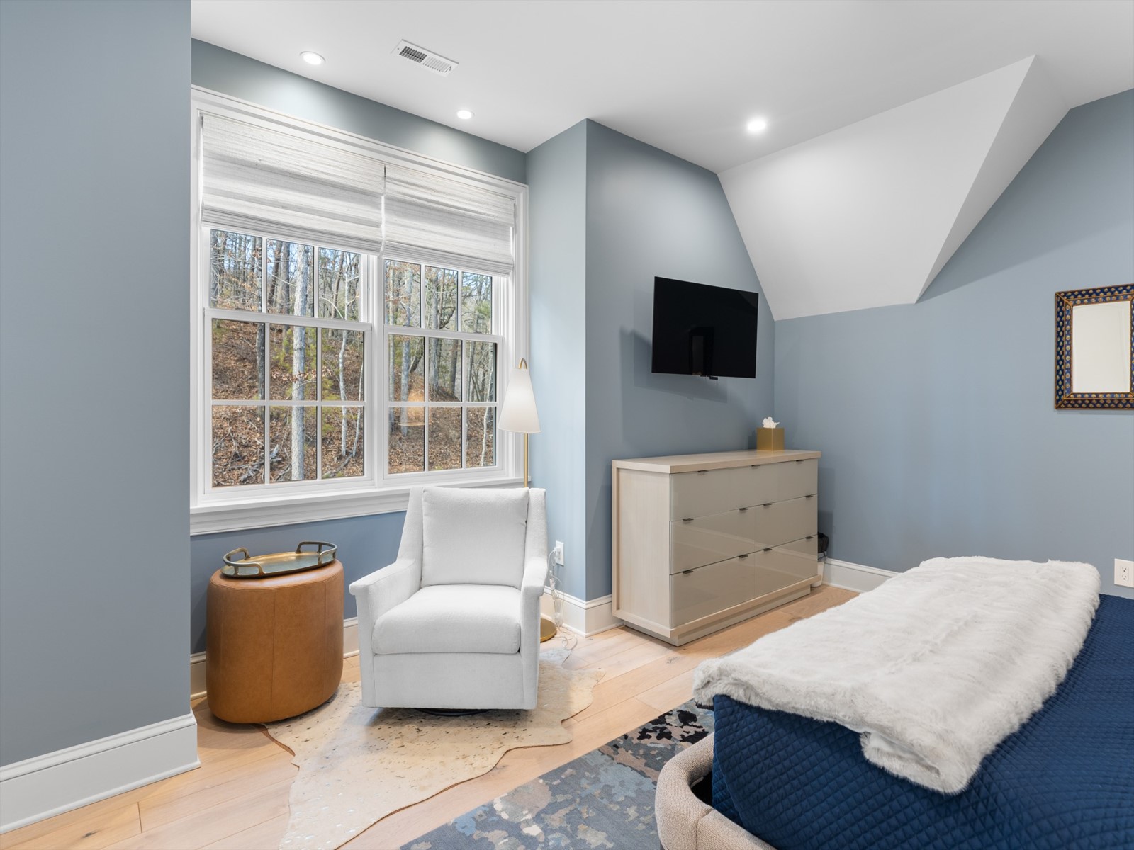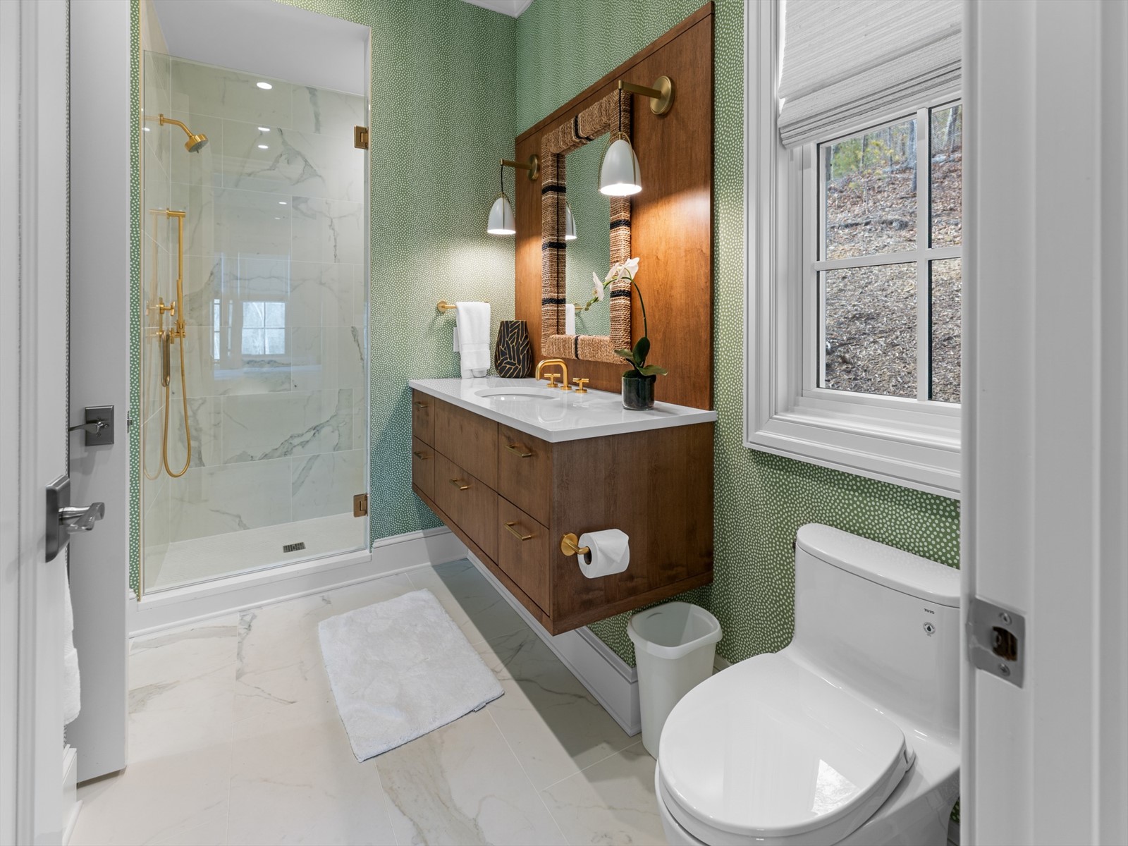 Located within the prestigious Greenbrier Sporting Club, this remarkable estate, completed in 2024, features two thoughtfully designed homes on a single property, offering a perfect blend of luxury, privacy, and mountain charm. The main residence spans 5,850 square feet and includes 3 bedrooms, 4 full baths, and 1 half bath. Set on an expansive, fenced-in yard, the home enjoys unobstructed views of The Old White golf course and boasts one of the best mountain views in the community, all while being conveniently situated lower in the mountains for easy access. Inside, the main level showcases two spacious en suite bedrooms, providing ideal comfort for everyday living and guests alike. The primary suite is a luxurious retreat with a private office, sunroom, wet bar, walk-in closet, and a spa-inspired bathroom finished in Calcutta Black Quartz and featuring an Americh tub. The heart of the home is the stunning gourmet kitchen, appointed with seven slabs of Calacatta Hera Quartz, custom cabinetry, a Wolf range with outdoor grill, Sub-Zero refrigeration, and a Cove dishwasher—designed to impress both the casual cook and seasoned chef. The kitchen flows seamlessly into the great room, where 13-foot ceilings and a striking Soapstone fireplace create an inviting space for entertaining. The adjacent sunroom, filled with natural light and warmed by a gas fireplace, connects effortlessly to both the great room and kitchen, offering a cozy yet open feel. Upstairs, you'll find a third bedroom with two full bathrooms, along with unfinished space above the three-car garage—perfect for a potential fourth bedroom, studio, or media room. The guest house is equally charming, featuring three en suite bedrooms, a stone patio, and a gas fireplace, ideal for hosting family and friends or offering private accommodations. Whether you're relaxing in the yard while taking in the sweeping golf course and mountain views, or entertaining in the sunlit interiors, this exceptional property captures the best of life at The Greenbrier Sporting Club.